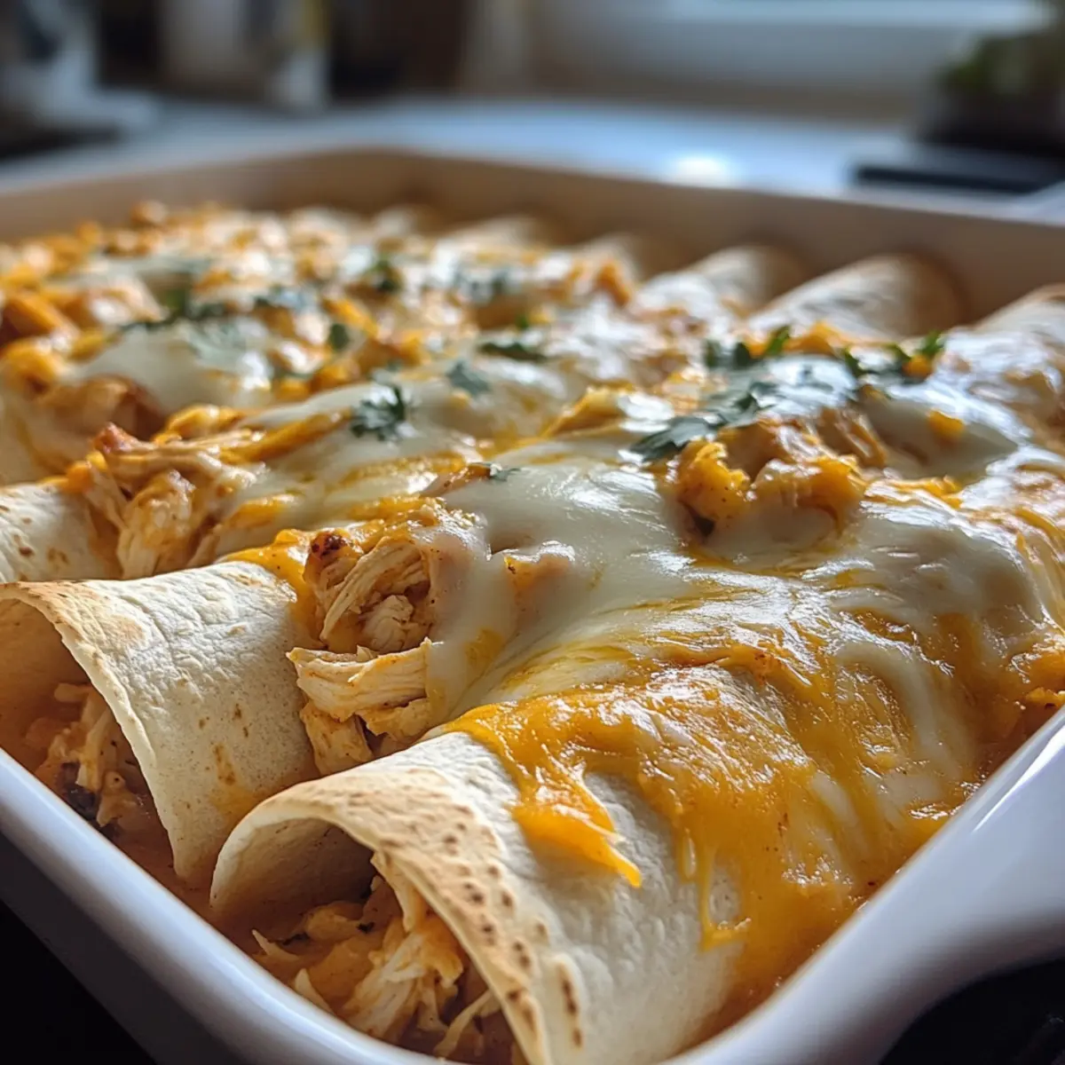 These 38g Protein Chicken Enchiladas with Dreamy White Sauce are perfect for meal prep enthusiasts! You can prepare the chicken mixture and assembly up to 24 hours in advance, storing them in the refrigerator to maintain their freshness. Simply mix the shredded chicken with spices, assemble the enchiladas, and cover them tightly to prevent drying. The creamy white sauce can also be made ahead; just refrigerate it separately, and it will stay fresh for up to 3 days. When you’re ready to serve, pour the sauce over the enchiladas and top with cheese, then bake as directed. This way, you’ll enjoy a wholesome meal with minimal effort—ideal for busy weeknights!