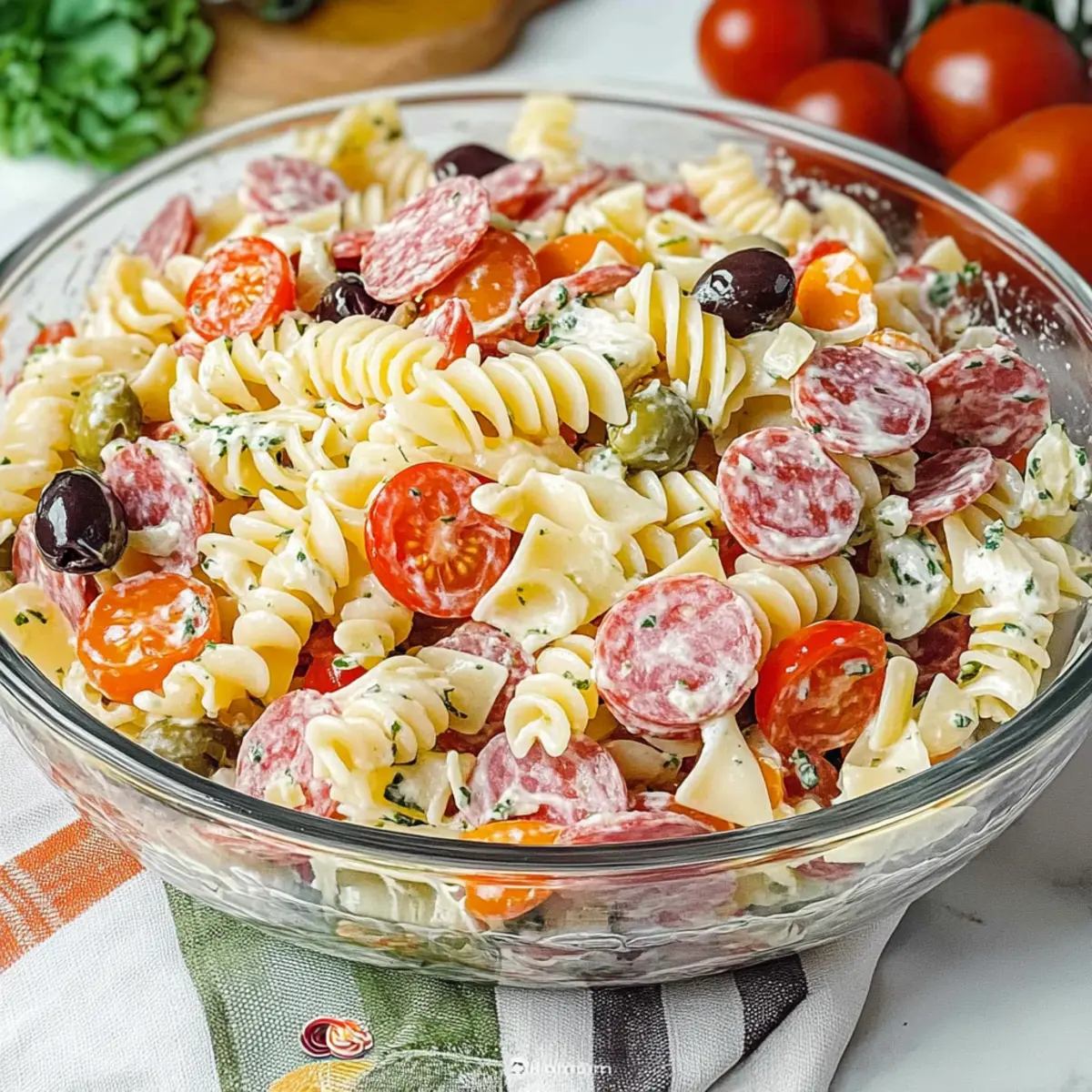 When choosing your ingredients, look for fresh produce and high-quality meats and cheeses. For veggies, choose firm cherry tomatoes without dark spots, and opt for meats that are fresh and flavorful. Selecting quality components will elevate your Antipasto Pasta Salad to new heights of deliciousness!