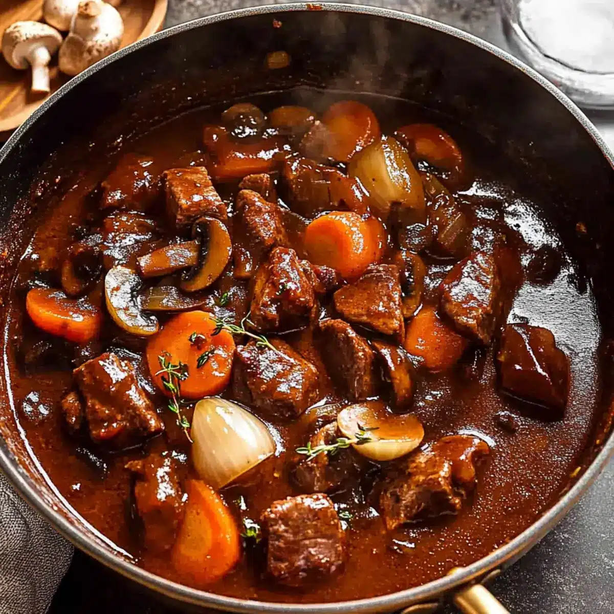 Certainly! For a gluten-free option, swap the regular flour for a gluten-free alternative like cornstarch. If you have concerns about alcohol, you could use a non-alcoholic red wine to achieve a similar flavor profile, but I highly recommend sticking to the original version for the best taste.