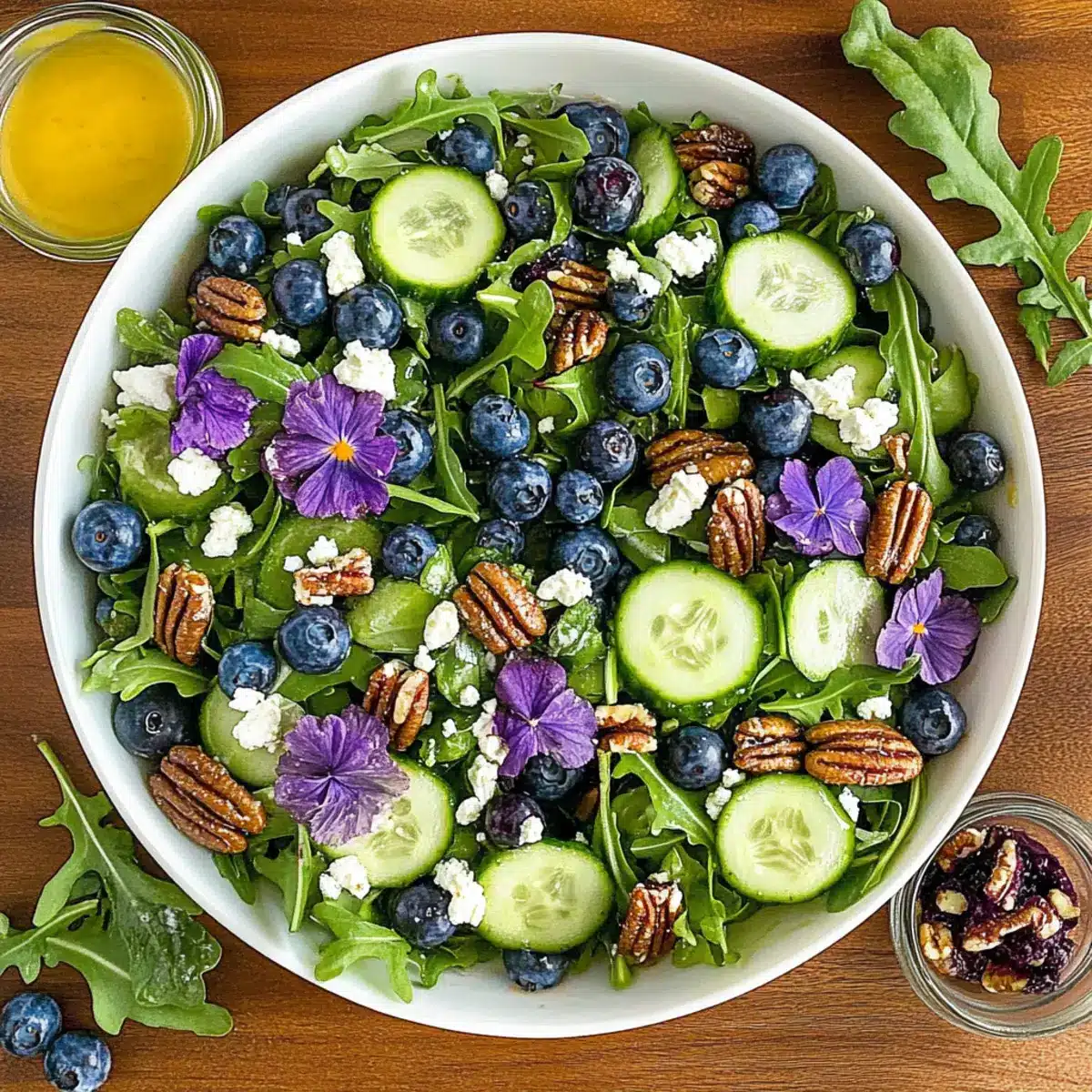Dressing Timing: Prepare the honey mustard dressing just before serving to keep your Blueberry Arugula Herb Salad fresh and vibrant—no one likes a soggy salad!