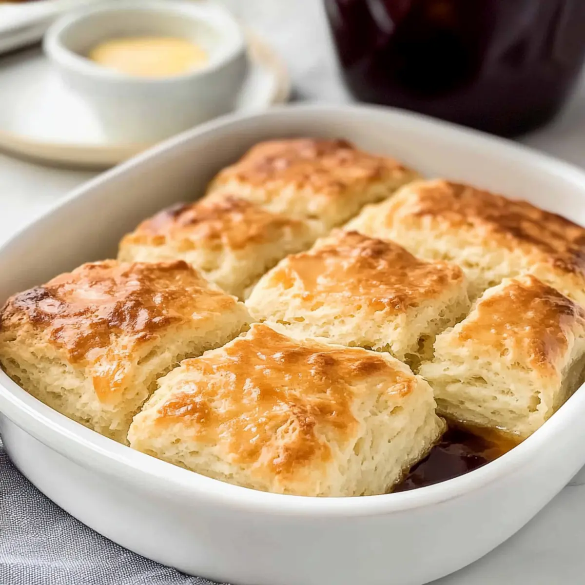 These Butter Swim Biscuits are perfect for meal prep enthusiasts looking to save time on busy mornings! You can prepare the biscuit dough up to 24 hours in advance by mixing all your dry ingredients and combining them with the buttermilk without baking. Store the dough in an airtight container in the refrigerator to keep it fresh and maintain that fluffy texture. When you’re ready to bake, simply pour the melted butter into your casserole dish, spoon the chilled dough over it, cut into squares, and bake as directed. This way, you’ll still enjoy soft, flaky biscuits that are just as delicious as freshly made, allowing you to savor the convenience while impressing your family or guests!