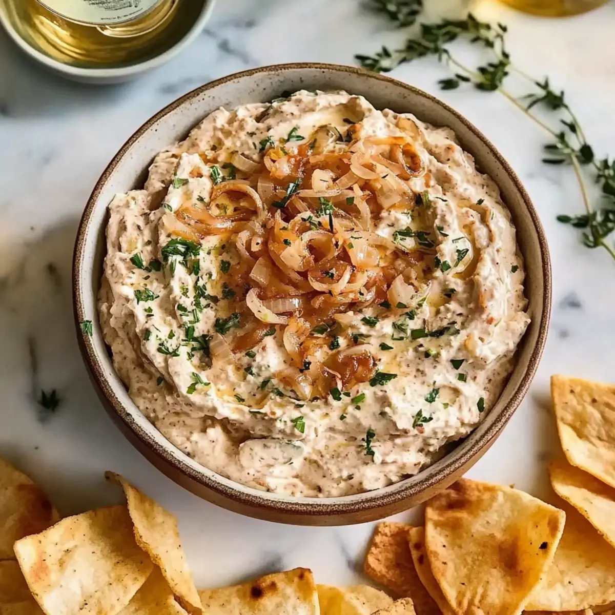 Crispy Pita Chips: Their sturdy texture complements the dip excellently, pairing perfectly with each dollop of caramelized goodness. The slight saltiness enhances the sweet onions beautifully.