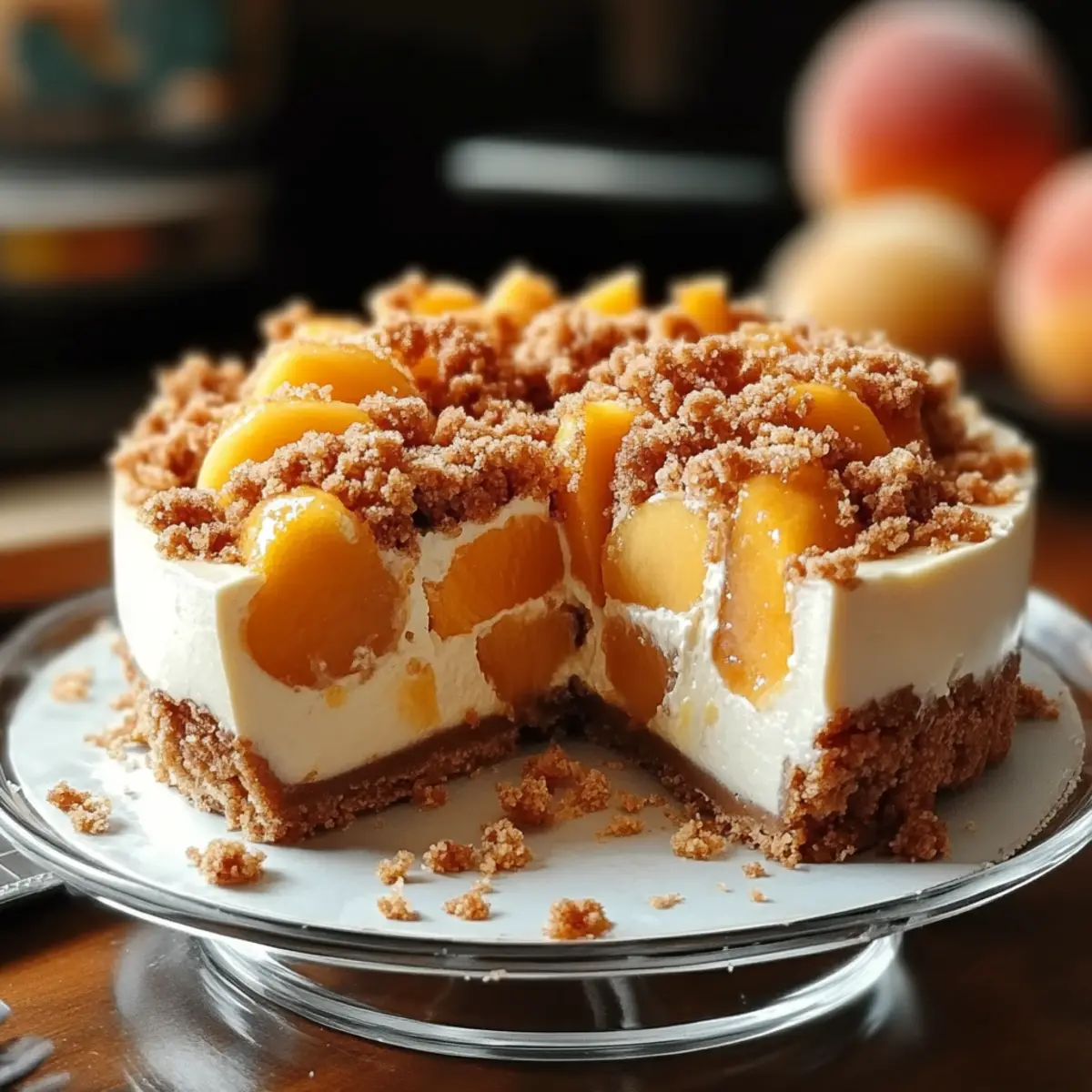 Bourbon Peach Streusel Cheesecake for Summer Bliss Awaits