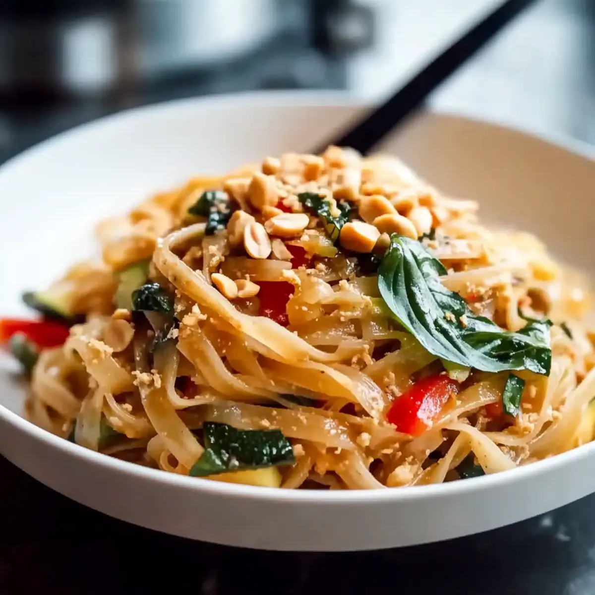 Vibrant Rainbow Vegetarian Pad Thai with Peanuts and Basil Recipe