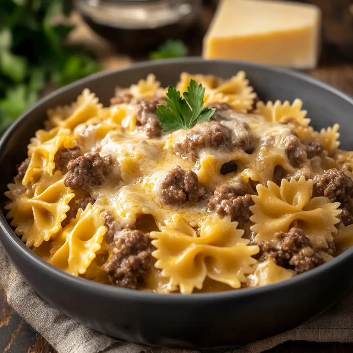Ultimate Cheesy Beef and Bowtie Pasta in Garlic Butter Bliss