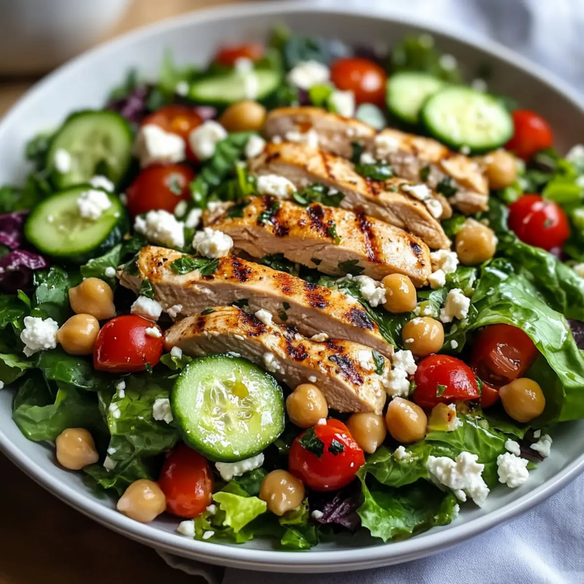 Protein-Packed: This Chicken & Chickpea Power Salad is loaded with lean protein from tender grilled chicken and fiber-rich chickpeas, making it a satiety-boosting meal.