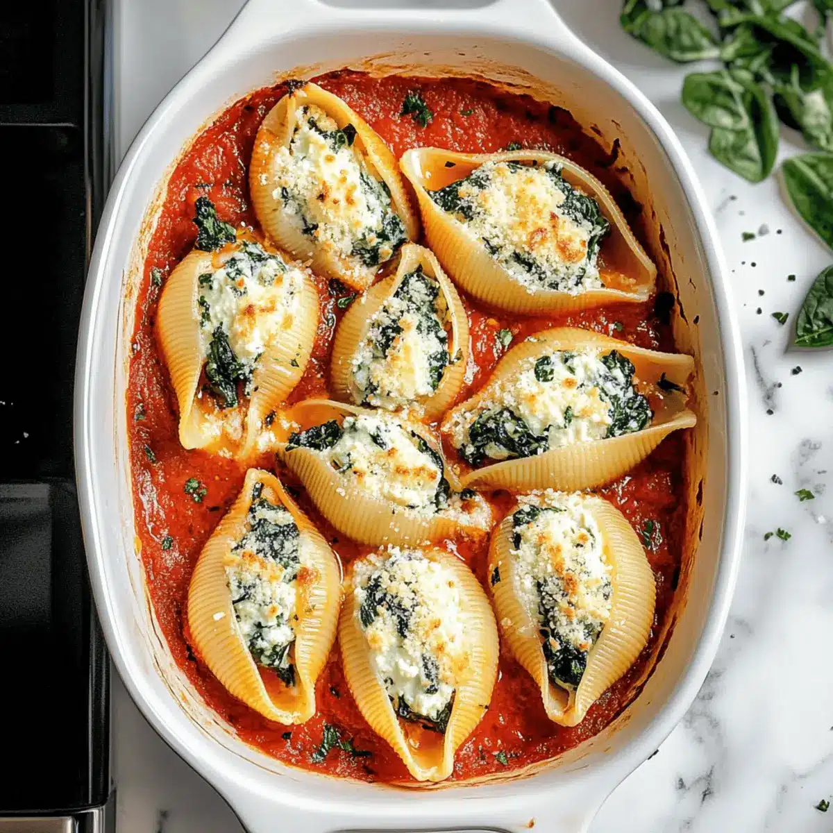 Herb Infusion: Add fresh basil or parsley for a vibrant herbal note. These greens not only brighten the flavor but also add a pop of color and freshness to your stuffed shells.