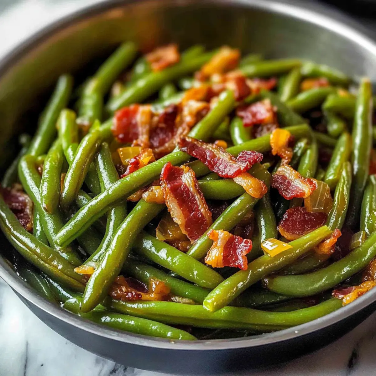 Comforting and familiar, these Classic Copycat Texas Roadhouse Green Beans elevate any meal, turning even the simplest dinner into a memorable feast. Smoky bacon adds a savory richness that complements the sweet sautéed onions. Quick to prepare, you can whip these up in just 20 minutes, perfect for busy weeknights. Versatile enough to pair with grilled meats, barbecue, or even holiday spreads from Campbells Green Bean to Green Bean Casserole. Kid-friendly, these beans can be a sneaky way to get picky eaters excited about veggies! Overall, they’re sure to become a family favorite that keeps everyone coming back for more.