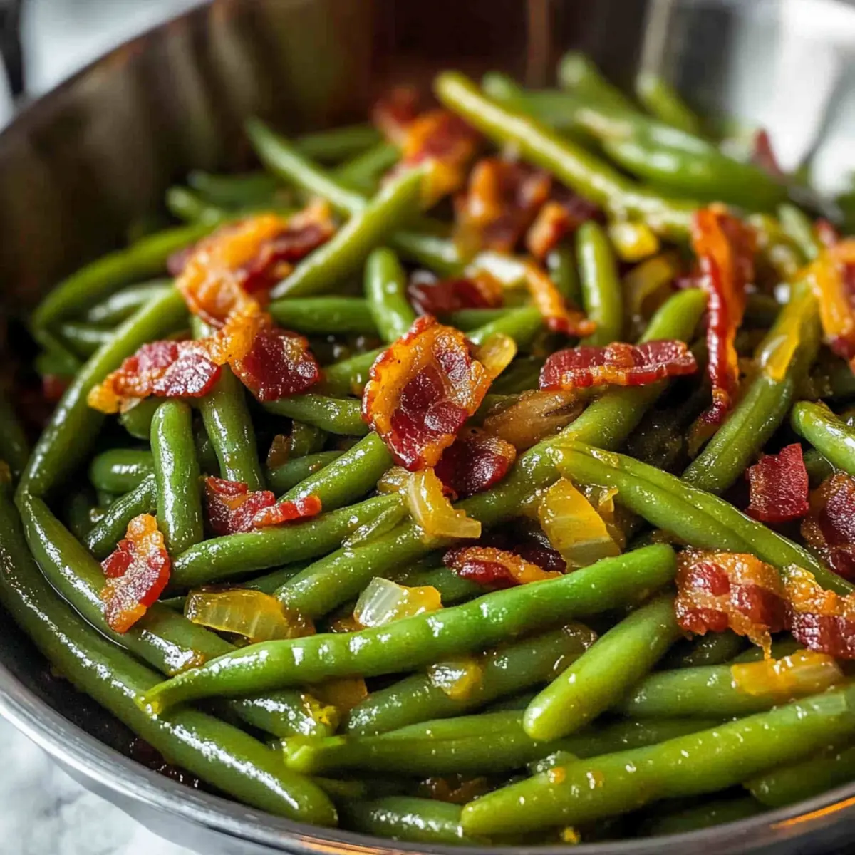 Carefully transfer the green beans to a serving dish, ensuring to scoop up all the delicious bacon and onion bits. Serve them warm, and enjoy your homemade Classic Copycat Texas Roadhouse Green Beans alongside your favorite mains. They make a perfect pairing for grilled meats or barbecued dishes!