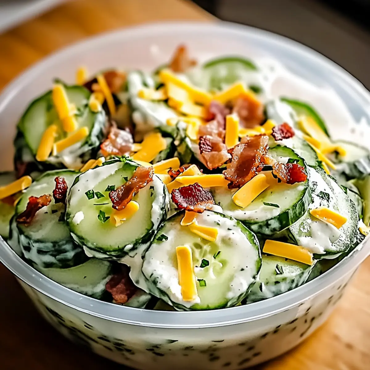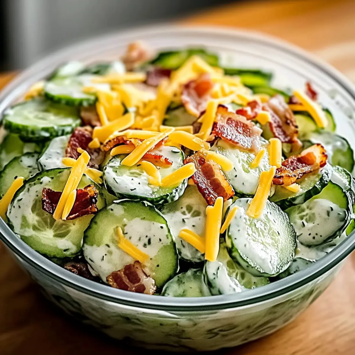 Serving Suggestion: For optimal taste, avoid adding bacon or cheese until ready to serve. This prevents them from becoming soggy and keeps your creamy cucumber salad delightful!