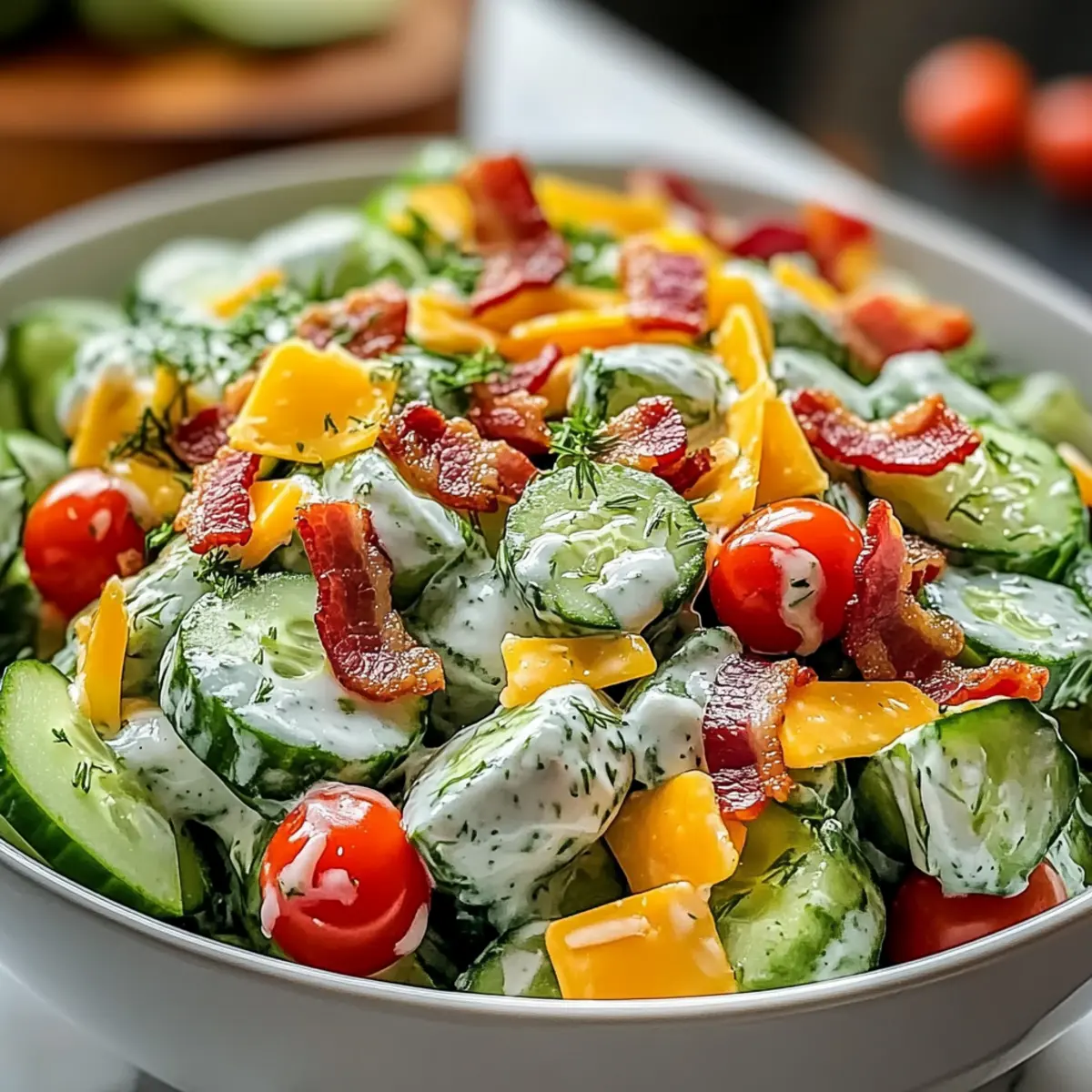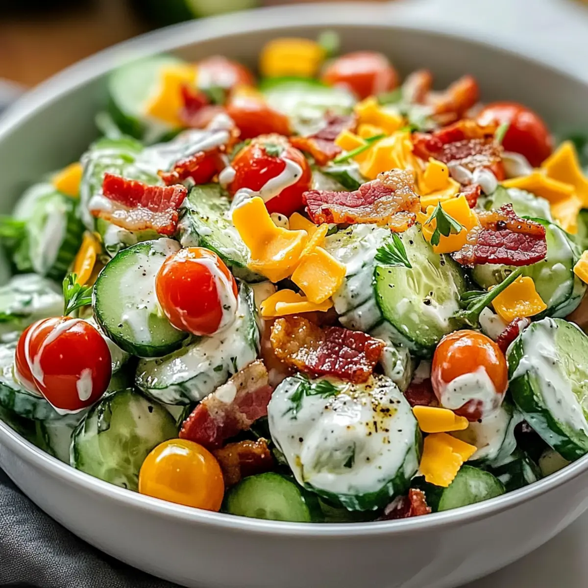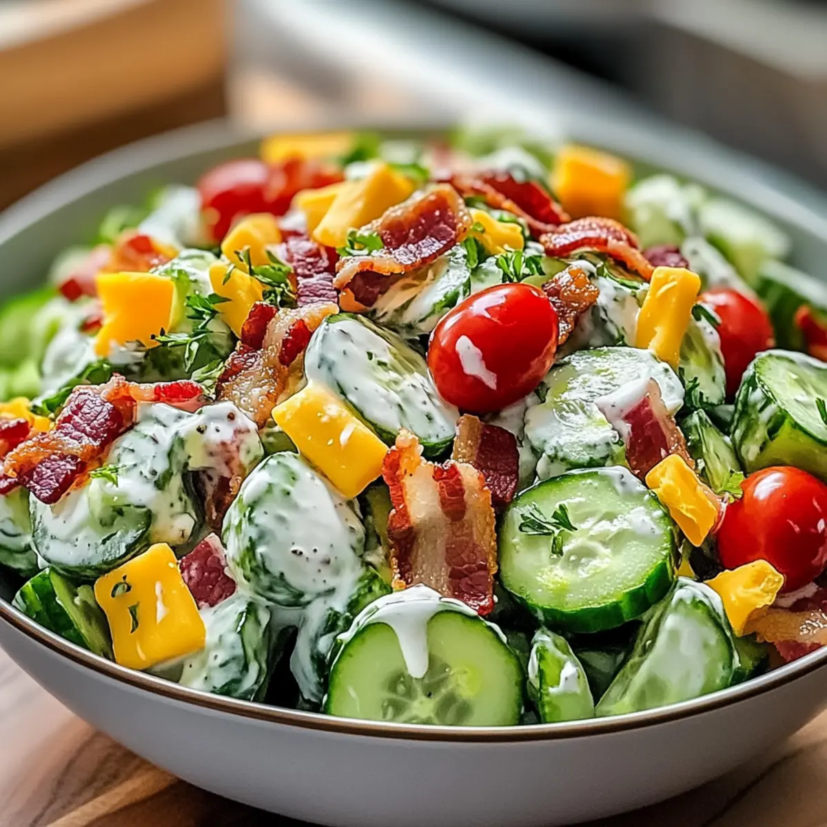 Texture Play: The combination of crunchy cucumbers, crispy bacon, and creamy dressing provides a satisfying crunch that’s hard to resist. This salad is truly an experience everyone will rave about!
