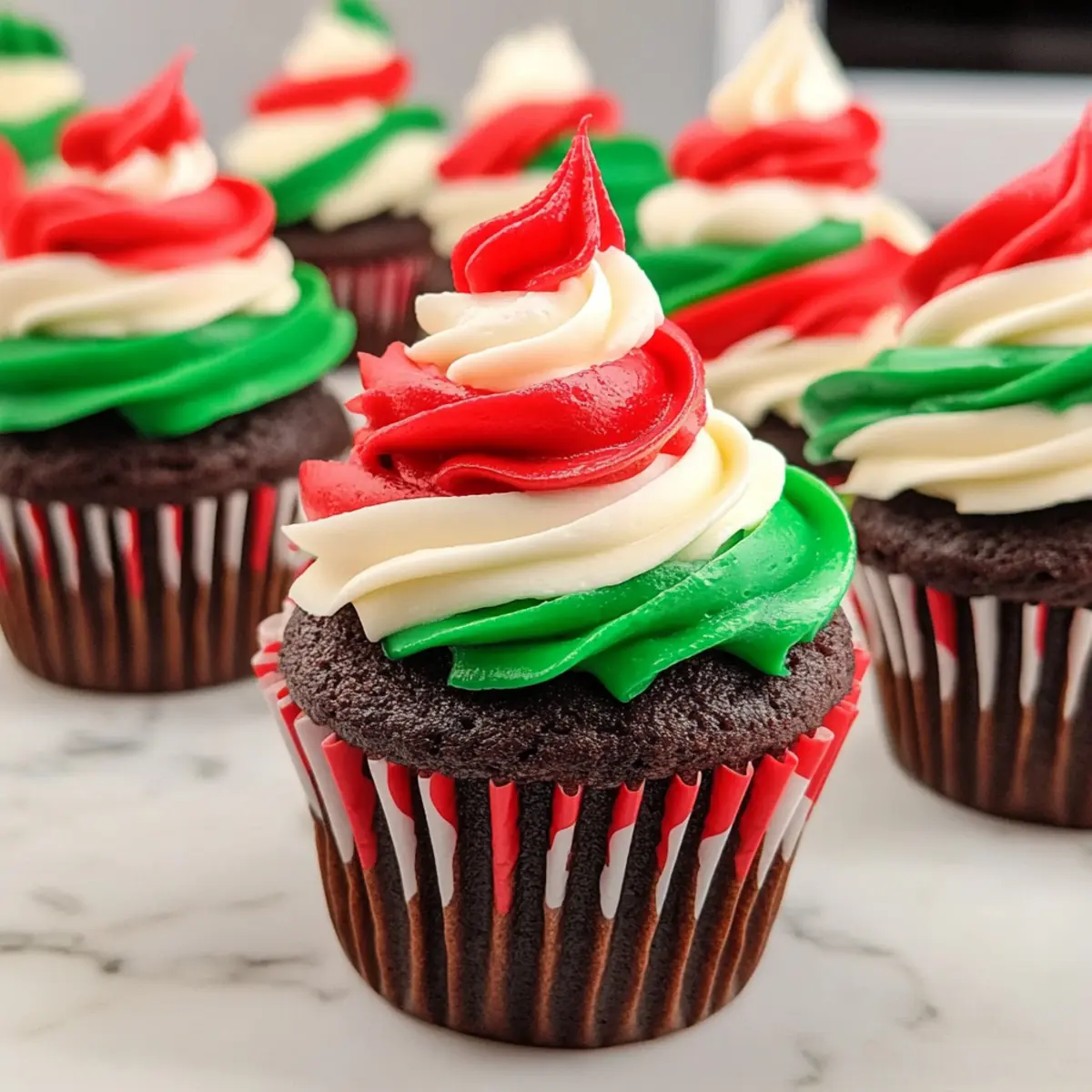 While browsing through holiday baking plans, I stumbled upon a cheerful memory—my aunt’s kitchen, filled with sweet scents and colorful decorations, always came alive with sprightly laughter and baking magic. Today, I’m thrilled to share my version of that nostalgia with these Easy Christmas Cupcakes topped with festive buttercream frosting in vibrant red, green, and white! Not only are they a visual delight for your holiday gatherings, but they also come together quickly, making them perfect for busy schedules. Imagine the joy of pulling these beauties from your oven, their warm aroma mingling with laughter and cheer. Trust me, whether served at an elegant feast or a casual family gathering, these cupcakes will bring a sprinkle of joy to every celebration. Ready to create delightful memories of your own?