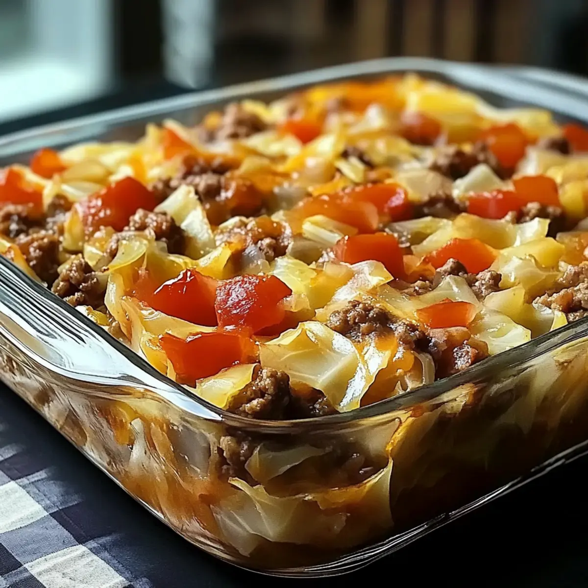 Once the Easy Savory Cabbage Beef Bake is cooked, remove it from the oven and let it rest for about 5 minutes. This resting time allows the flavors to settle and the dish to hold its shape better for serving. Enjoy your warm, comforting meal that’s already bursting with savory goodness!