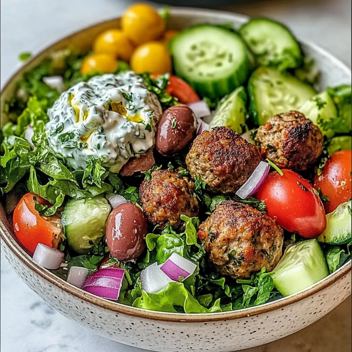 Customize Freshness: Feel free to personalize the salad base with your favorite vegetables. Freshness is key to balancing the flavors in your Greek Meatball Bowl recipe!