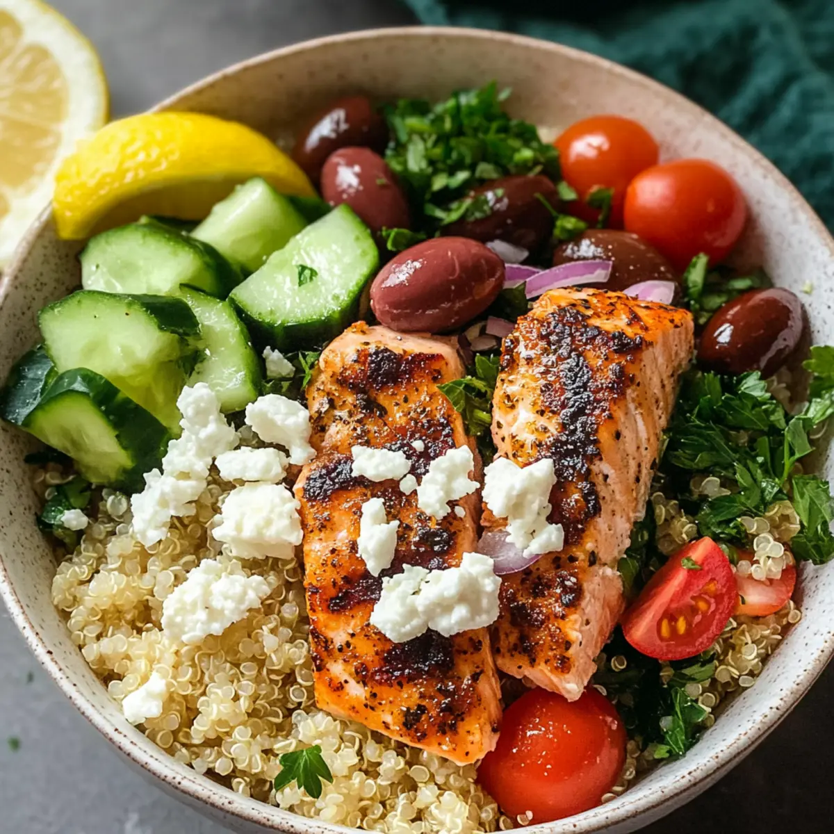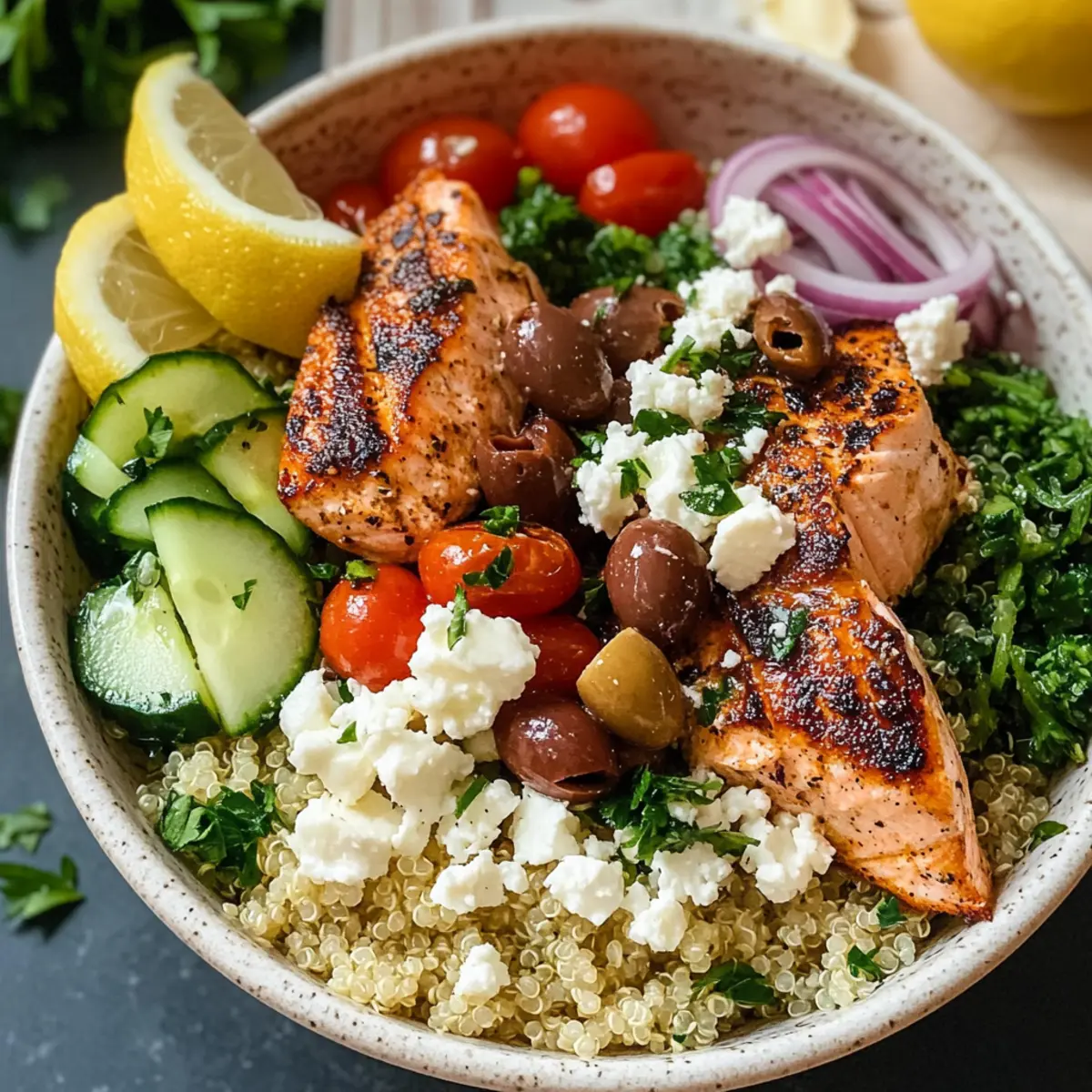 Healthy Mediterranean Salmon Bowls with Fresh Veggies Made Easy