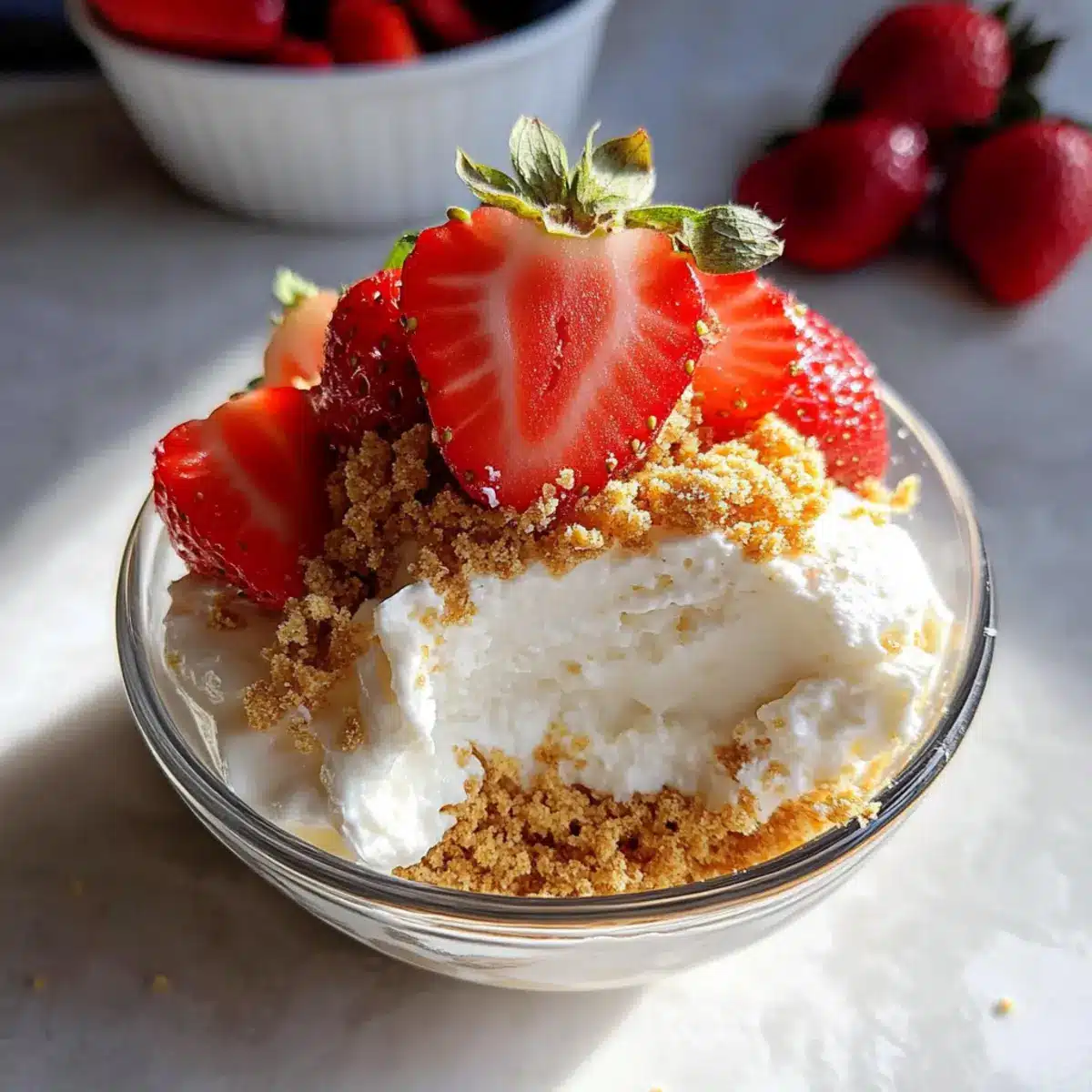 Just before serving, it’s time to get creative with toppings! Spoon the fluffy cheesecake into individual cups or bowls, then sprinkle fresh fruits like strawberries or blueberries on top. You can also add a few crushed graham crackers for added crunch and texture. This final touch not only elevates the presentation but allows everyone to customize their High Protein Cheesecake Fluff to their taste.