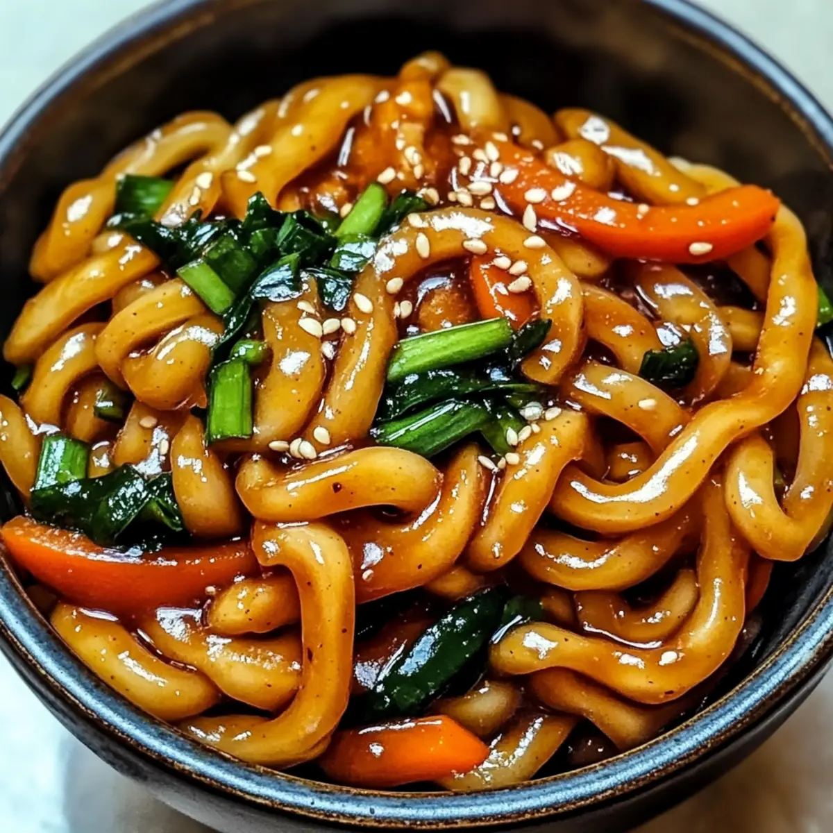 Plate the Yaki Udon immediately, drizzling with extra soy sauce if desired for added flavor. The noodles should look glossy and appealing, inviting you to dive right in. This comforting bowl of Yaki Udon is perfect for sharing or enjoying solo on a cozy night in!
