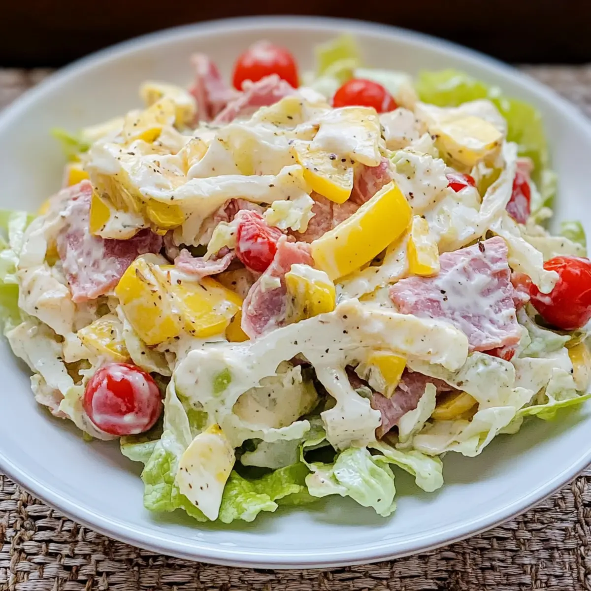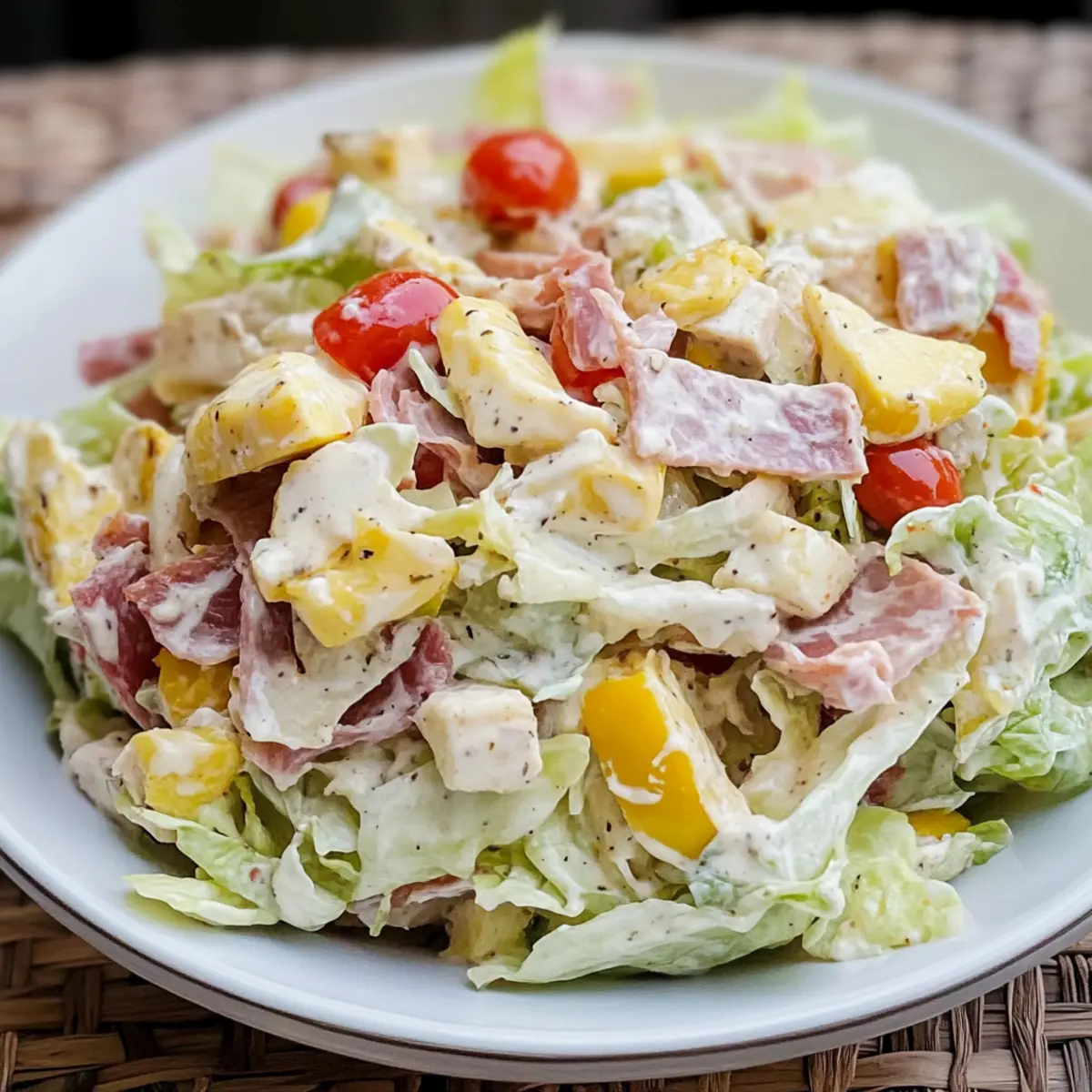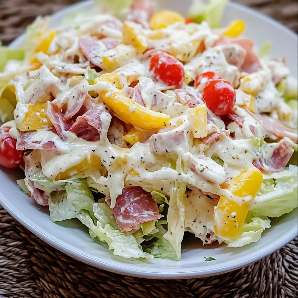 Bright, Bold Flavors: Each bite bursts with the robust tastes of deli meats, tangy banana peppers, and creamy dressing that elevates this salad beyond the ordinary.