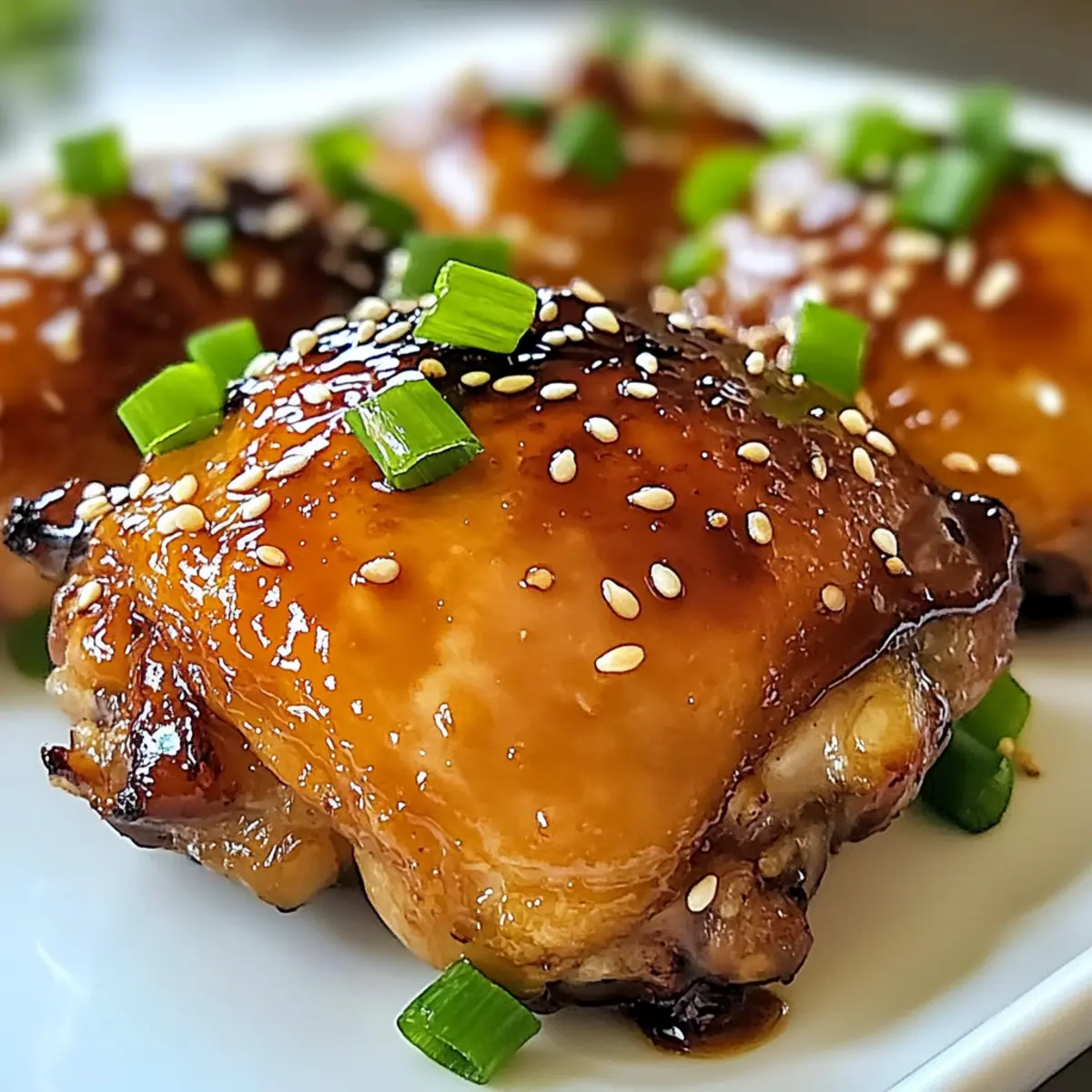 After baking, remove the chicken from the oven and let it rest for 5 minutes. This crucial step retains the juices, ensuring each bite of your Maple Soy Glazed Chicken Thighs is succulent and flavorful. Finally, garnish with sesame seeds and green onions before serving, adding brightness and crunch to your dish.