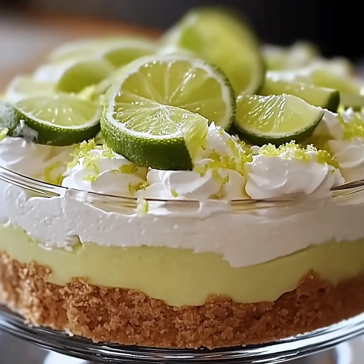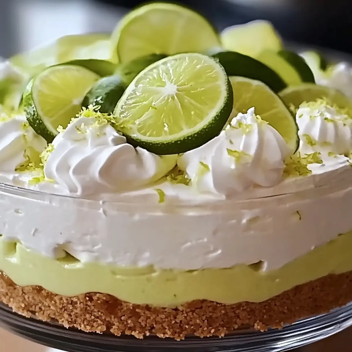 - Garnish and Serve: Garnish the top with lime slices and zest. Serve chilled, optionally adding a dollop of whipped cream.