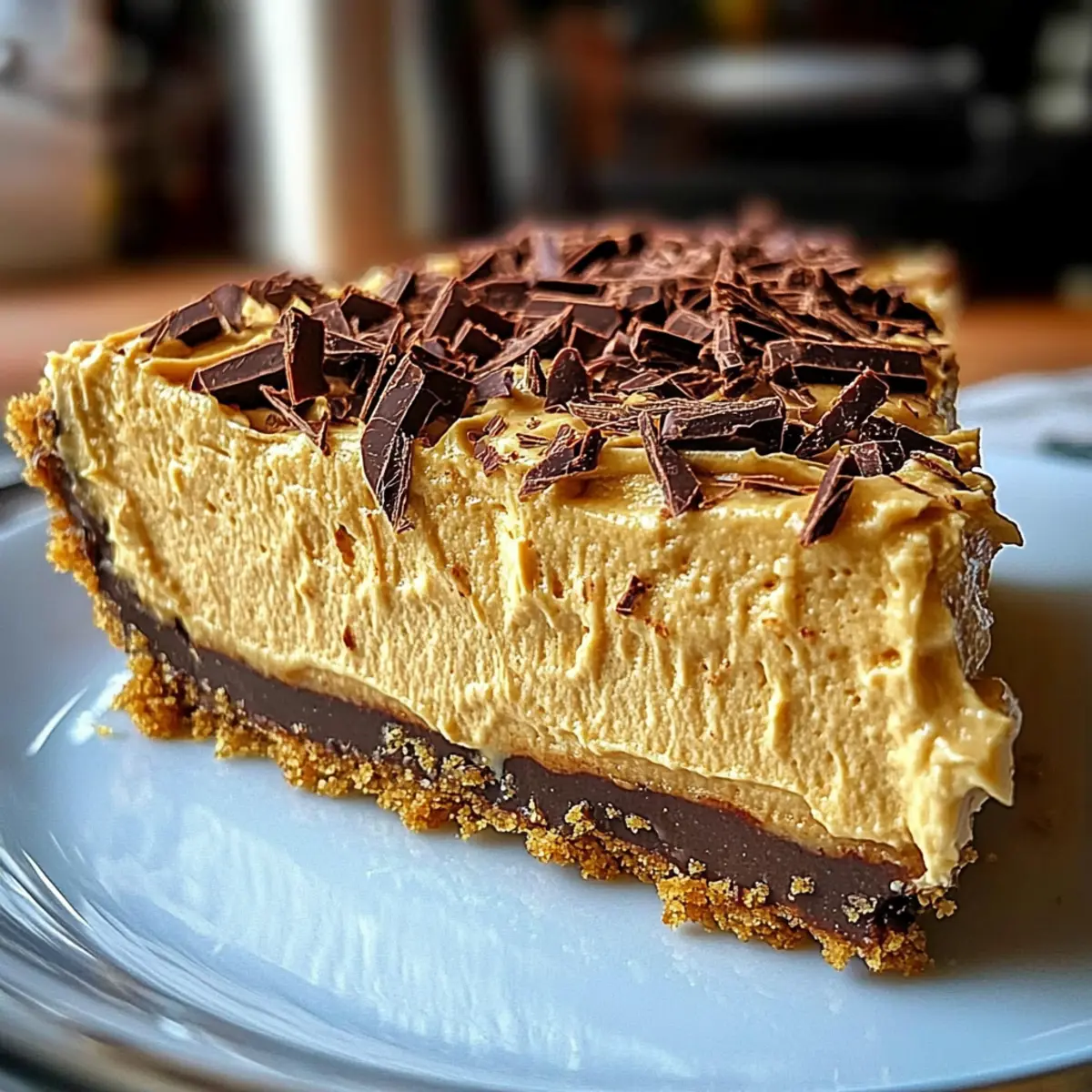 - Once the pie has set, remove it from the refrigerator and sprinkle chocolate shavings on top. For perfect slices, dip a knife in warm water before cutting.