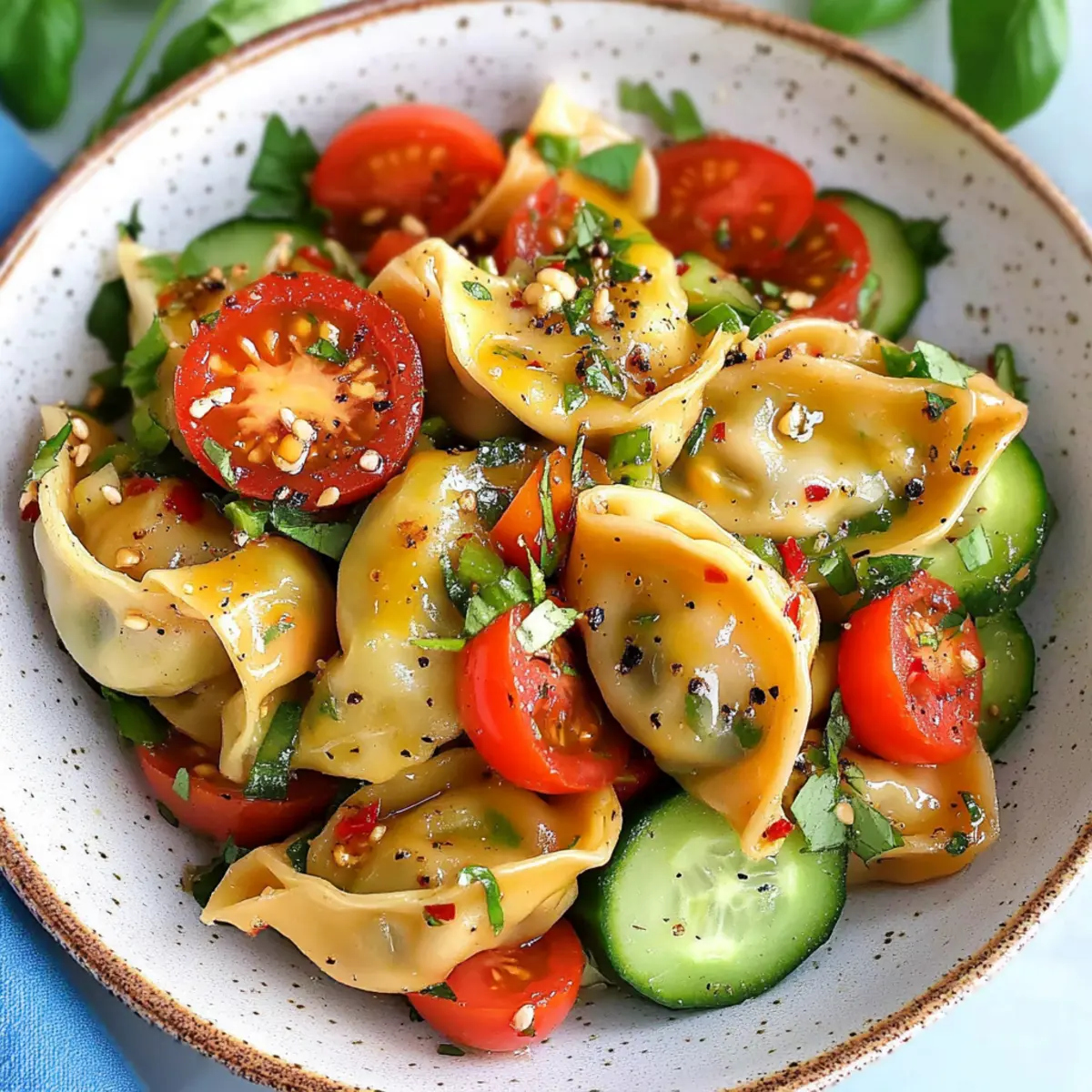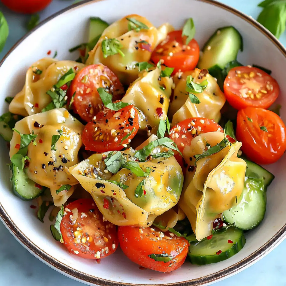 Avoid Soggy Dumplings: To keep the dumplings from getting soggy, add the tomatoes and cucumbers right before serving. This helps preserve their crunch!