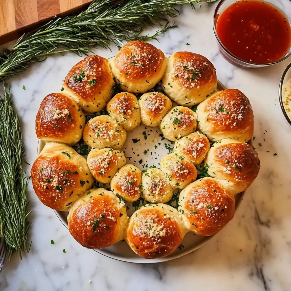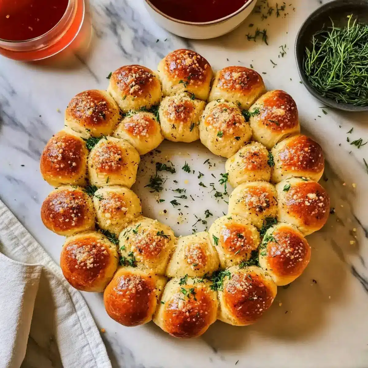 - Generous Garlic Butter: Don’t skimp on brushing the garlic butter mixture over the dough balls. This ensures rich flavor throughout your Pull Apart Garlic Bread Wreath.