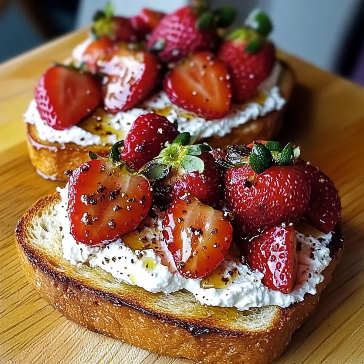 Your Roasted Strawberry Whipped Ricotta Toast is now ready to be enjoyed! Serve immediately while the bread is warm and crispy, and the strawberries are soft and jammy. This elegant brunch dish is perfect for impressing guests or elevating your morning routine with its vibrant flavors and textures.