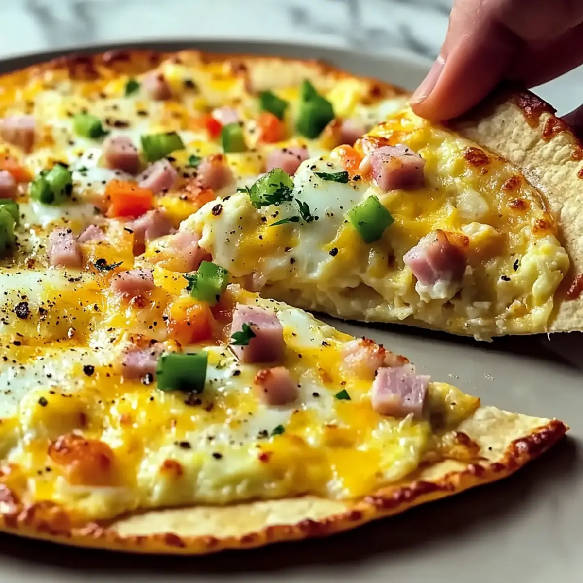 Delicious Simple Breakfast Tortilla Pizza in Minutes