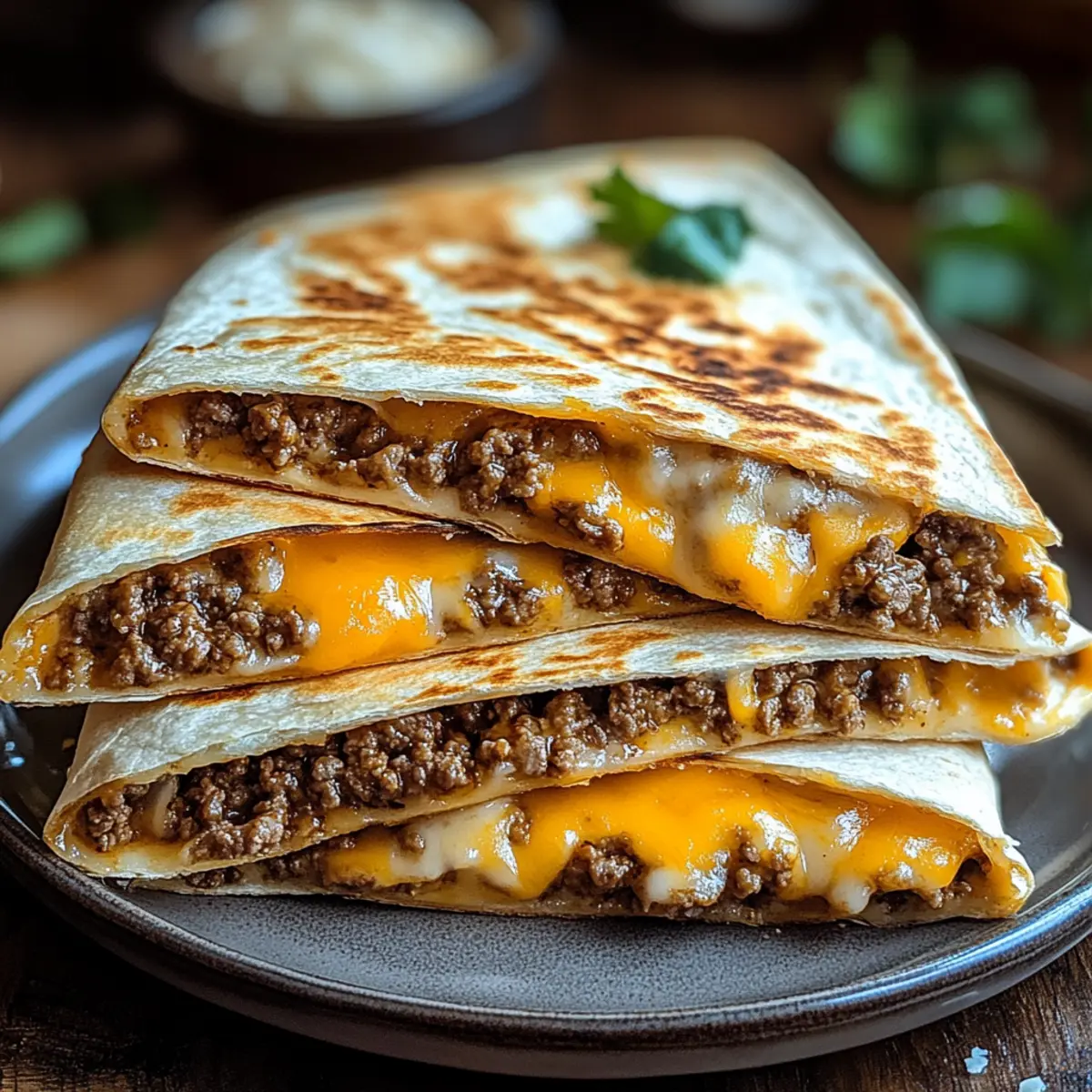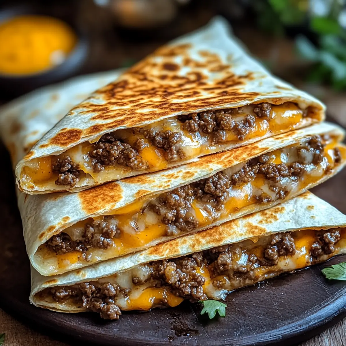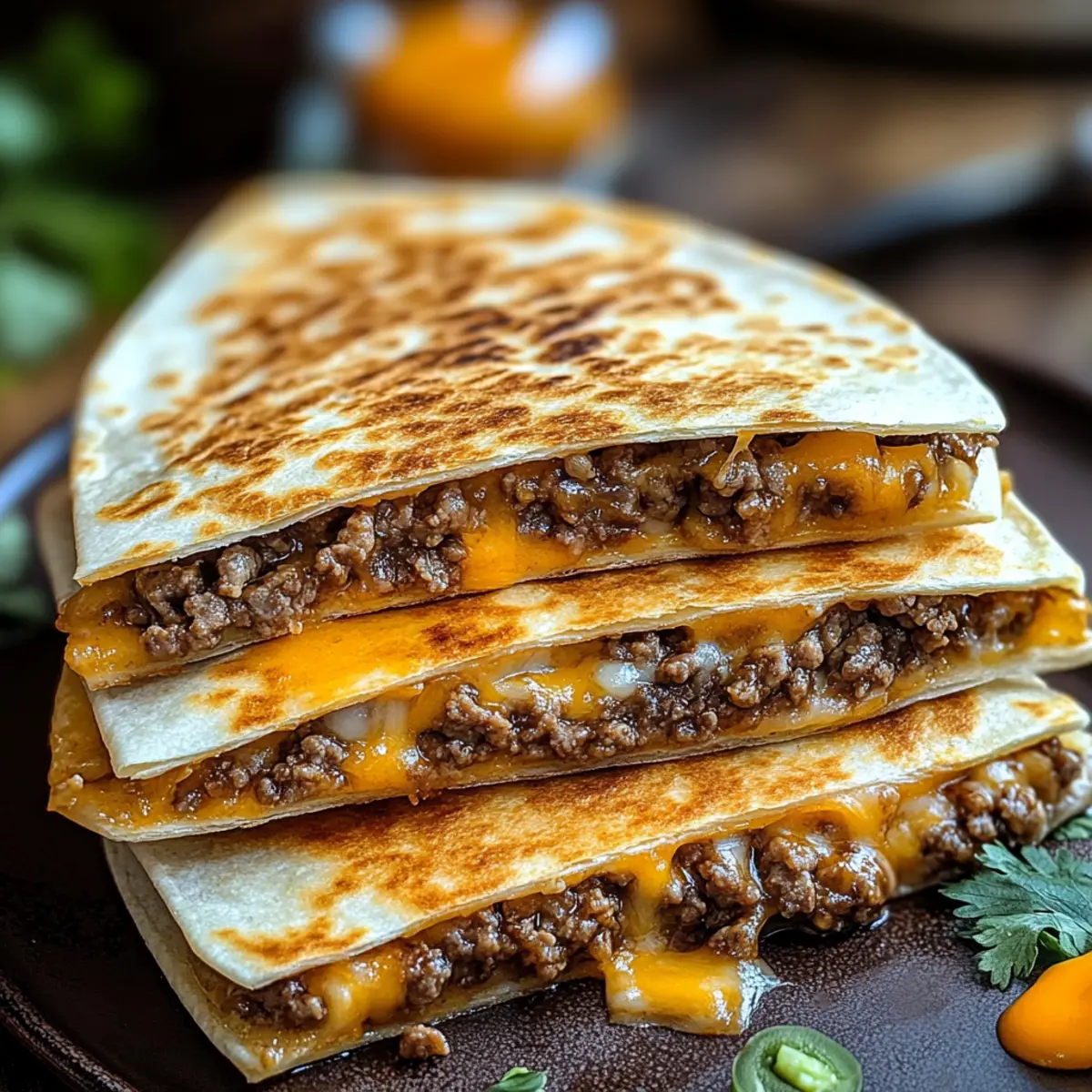 Pizza Party: Replace the beef with Italian sausage and melt mozzarella cheese, served with marinara sauce for dipping. It’s a fun way to enjoy the flavors of pizza in a crispy quesadilla form!