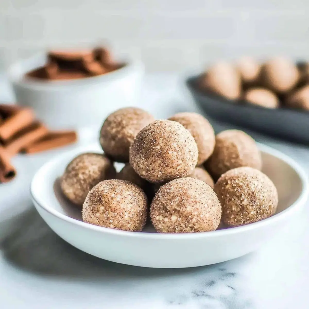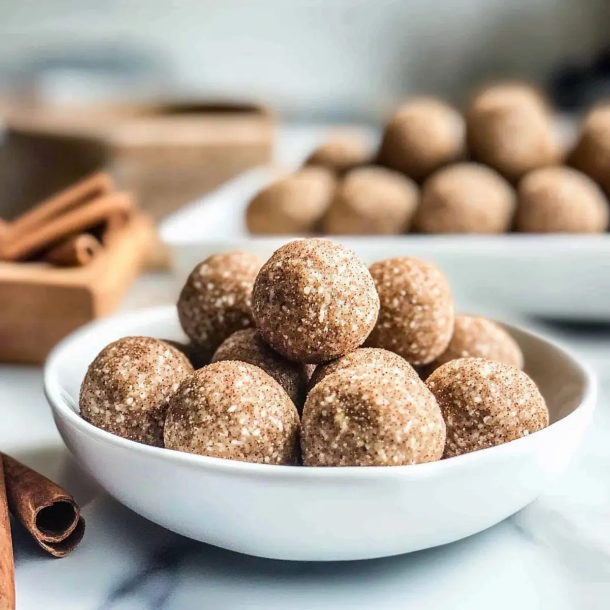 - Cinnamon Sugar Coating: Roll the chilled protein balls in a mix of cinnamon and coconut sugar for a delightful sugary crunch that mimics traditional snickerdoodles.