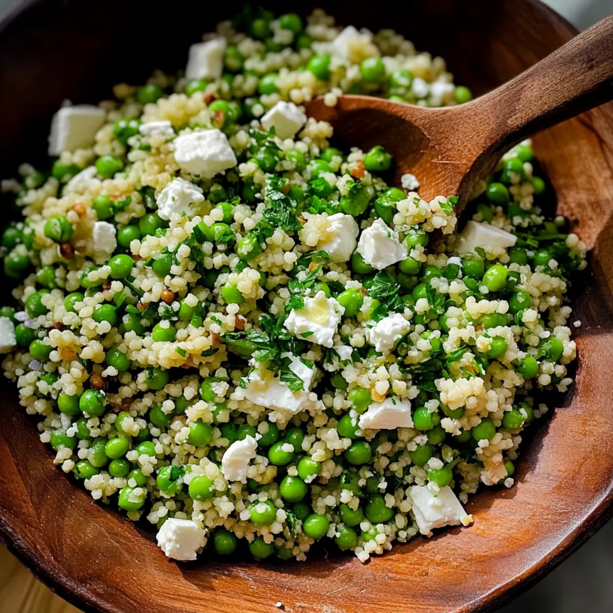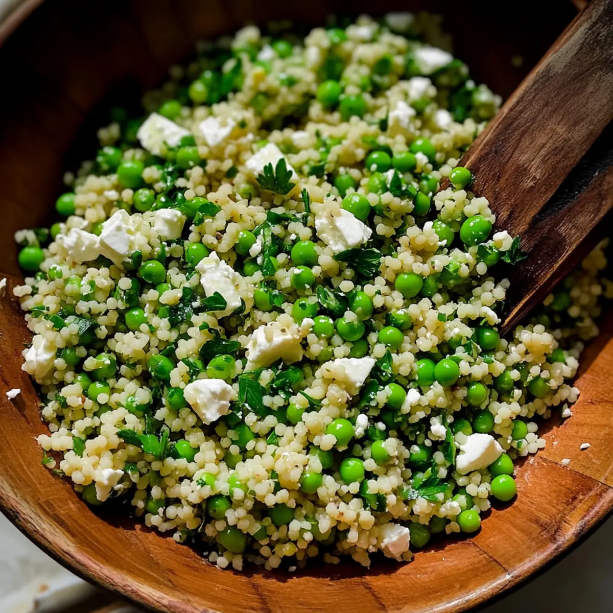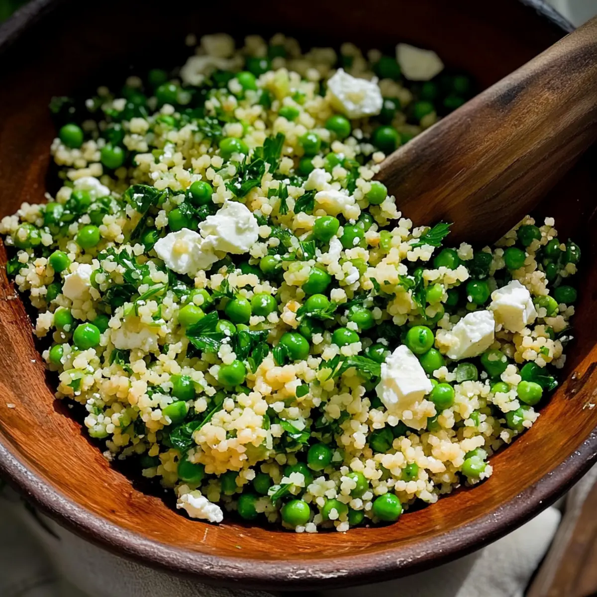 Vibrant Flavors: The Spring Pea Feta Couscous Salad bursts with fresh, lively ingredients that perfectly capture the essence of spring.