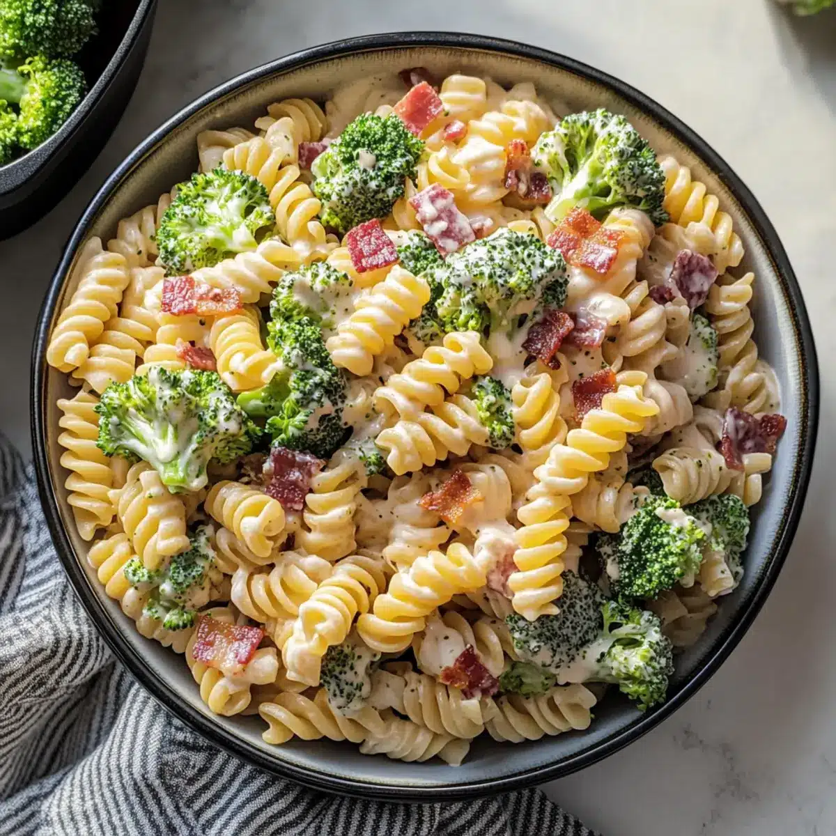 These Tasty Broccoli Pasta Salad options are perfect for those seeking to meal prep and save time during busy weeks! You can prepare the pasta and chop the vegetables up to 24 hours in advance, storing them in an airtight container in the refrigerator to maintain their freshness. For optimal flavor, make the dressing ahead as well—combine the mayonnaise, red wine vinegar, sugar, salt, and pepper—and refrigerate. Just before serving, mix the cooled pasta, broccoli, and onions with the dressing, and then gently fold in the crumbled bacon to preserve its delightful crunch. This way, you’ll enjoy a delicious, hassle-free side that’s ready to impress!