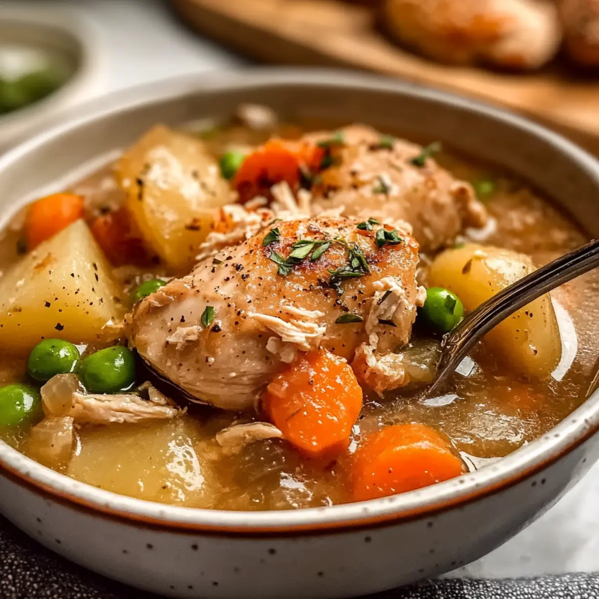 As the clouds roll in and chilly breezes whisper through the trees, I find myself craving something warm and satisfying—something that wraps around you like a cozy blanket. That’s where my Ultimate Comfort Chicken Stew comes in, a delightful slow cooker creation that takes the stress out of meal prep. This hearty dish boasts tender chicken and a medley of vibrant vegetables, simmered to perfection for hours, allowing all the flavors to meld beautifully. Not only is it a crowd-pleaser, but it’s also a make-ahead wonder that ensures you’re ready for busy weeknights or spontaneous gatherings with friends. Plus, the comforting aroma that fills your home is simply irresistible! So, are you ready to dive into this bowl of nostalgia and warmth? Let’s get cooking!