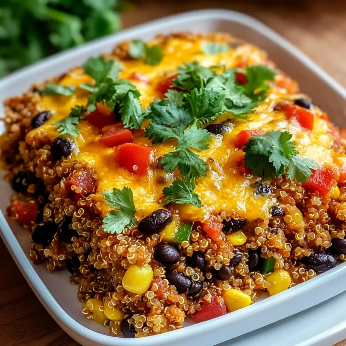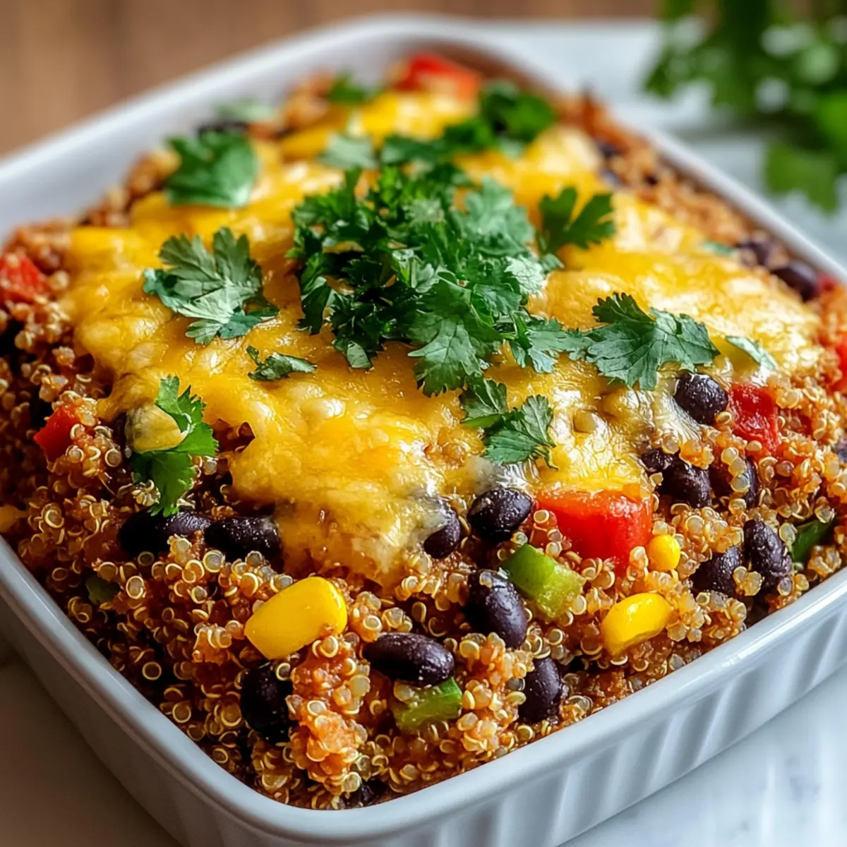 If desired, sprinkle fresh cilantro on top for a pop of color and a fresh bite. Serving your Vegetarian Dump & Bake Casserole is now a joy, as the comforting aromas will entice everyone to the table. Enjoy sharing this nourishing dish with your loved ones!